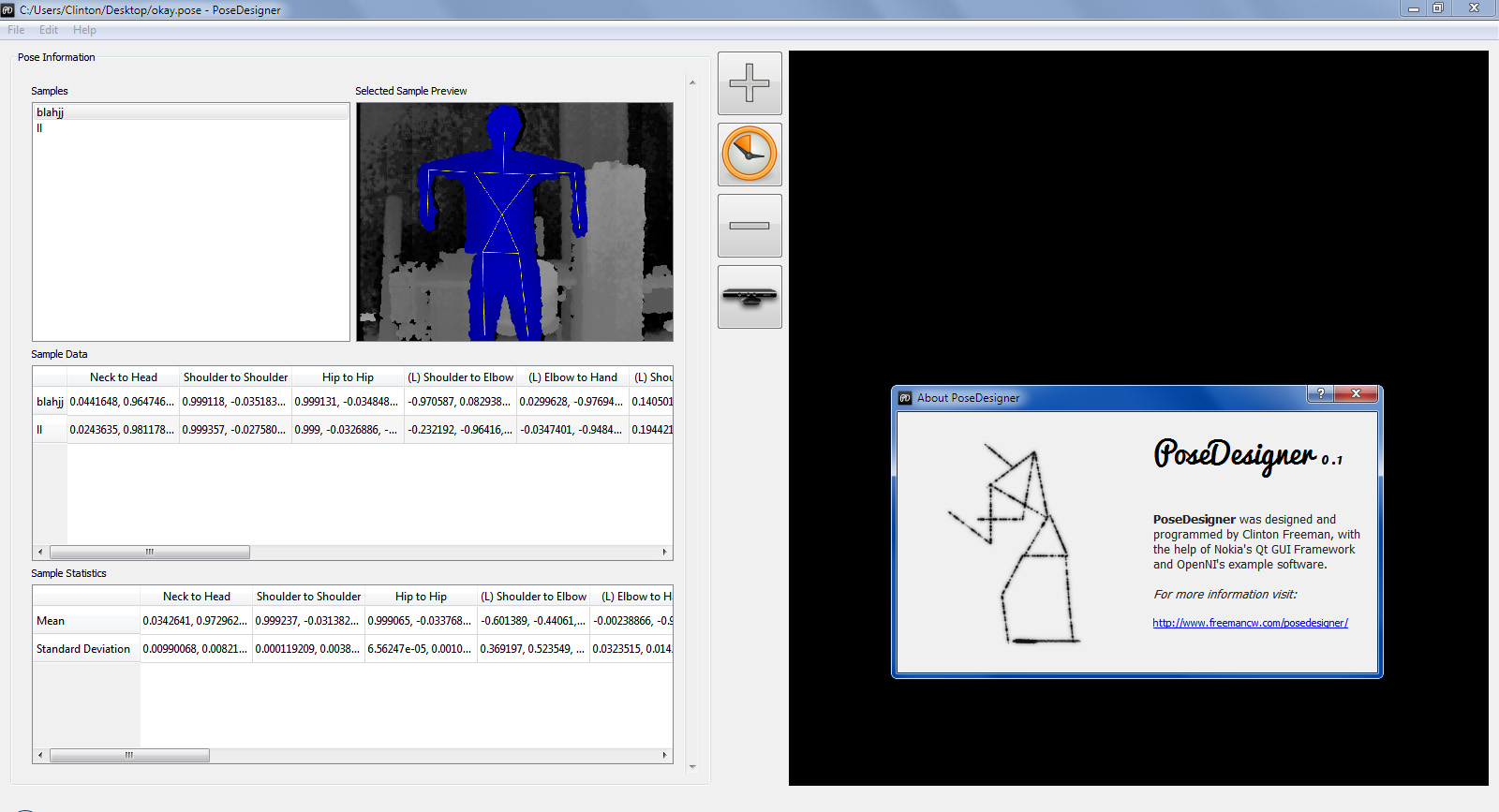 kinect gesture recognition posedesigner Published September 5, 2011 at 1600 × 867 in kinect gesture recognition posedesigner Pretty simple at the moment.